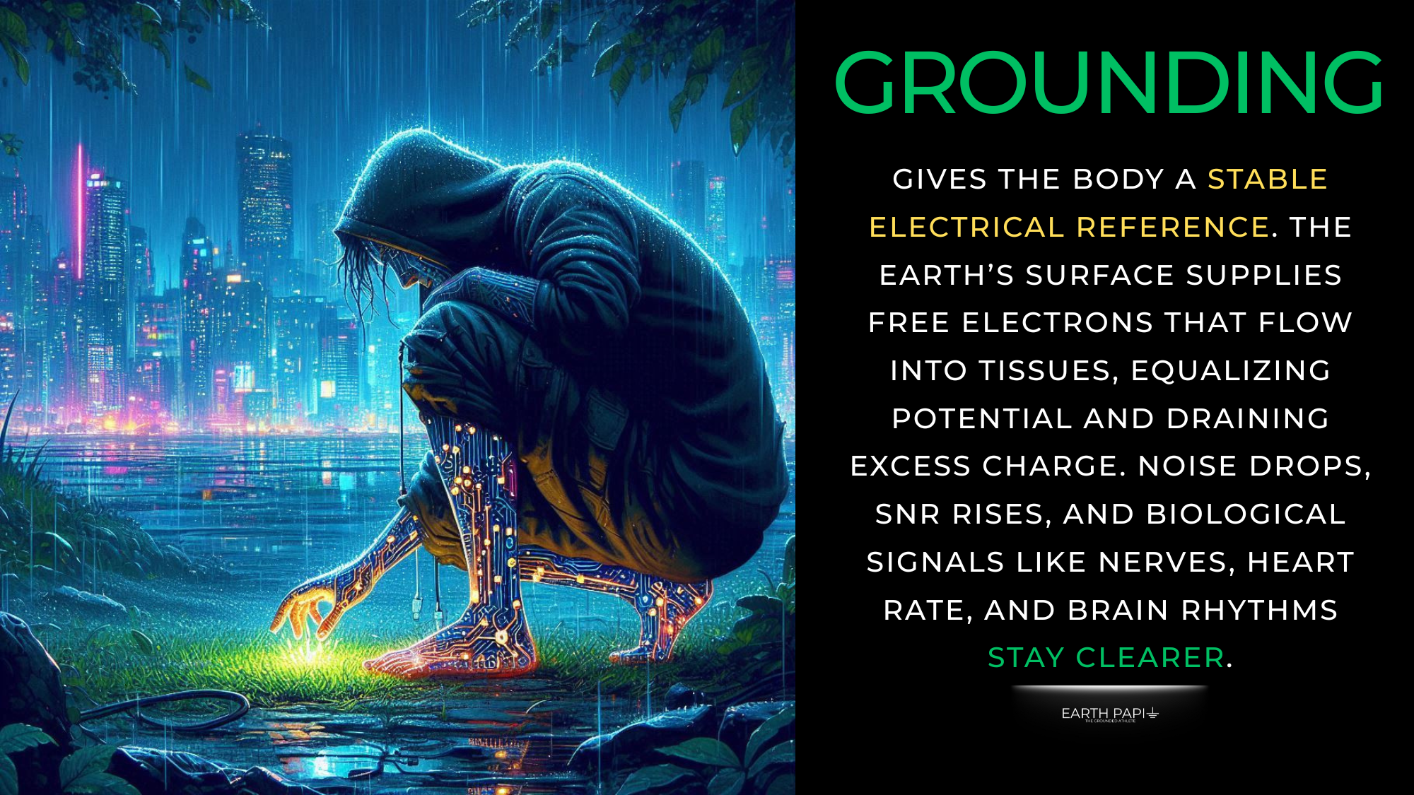 In short, grounding enhances SNR by stabilizing the body’s electrical baseline. A clean baseline means cleaner signals, which in biological terms translates to more efficient information processing, better regulation, and more resilience in noisy modern environments.