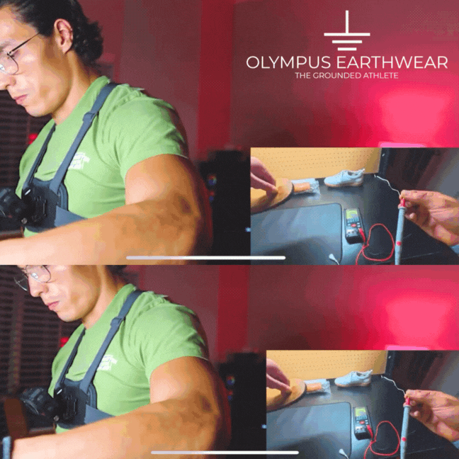 In the video thumbnail above (click it) I’ll show you in real time how touching a grounded mat or conductive footwear drops that voltage to nearly zero. Return to your natural electrical state!